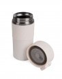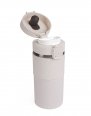 Вакуумная термокружка из нержавеющей стали, покрытая матовой цветной эмалью. Крышка-непроливайка с ситечком, которая при необходимости блокируется от случайного открывания. Объем 370 мл. Высота 18,3 см., диаметр 7,7 см. Поддерживает температуру до 6 часов.