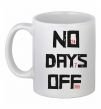 Нанести принт No days off на глянсову керамічну чашку можна лише на зовнішню сторону. Колір принту можна замовити будь-який!