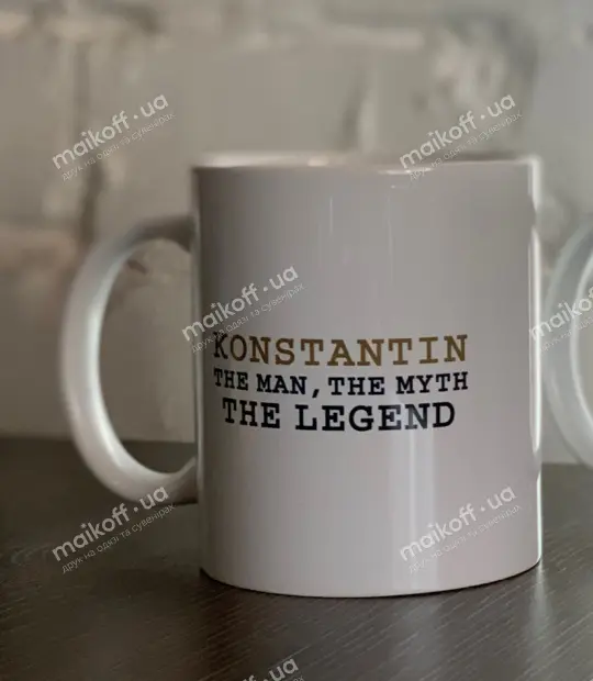 Нанести принт Konstantin the man the myth the legend на глянсову керамічну чашку можна лише на зовнішню сторону. Колір принту можна замовити будь-який!