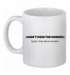 Нанести принт Донт пуш зе хорсес на глянсову керамічну чашку можна лише на зовнішню сторону. Колір принту можна замовити будь-який!