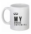 Нанести принт Infiniti my drug на глянсову керамічну чашку можна лише на зовнішню сторону. Колір принту можна замовити будь-який!