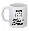 Нанести принт Keep calm and drive Ford на глянсову керамічну чашку можна лише на зовнішню сторону. Колір принту можна замовити будь-який!