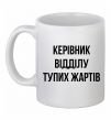 Нанести принт Керівник відділу тупих жартів на глянсову керамічну чашку можна лише на зовнішню сторону. Колір принту можна замовити будь-який!