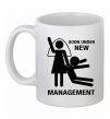 Нанести принт Soon under new management на глянсову керамічну чашку можна лише на зовнішню сторону. Колір принту можна замовити будь-який!
