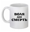 Нанести принт Воля або смерть на глянсову керамічну чашку можна лише на зовнішню сторону. Колір принту можна замовити будь-який!
