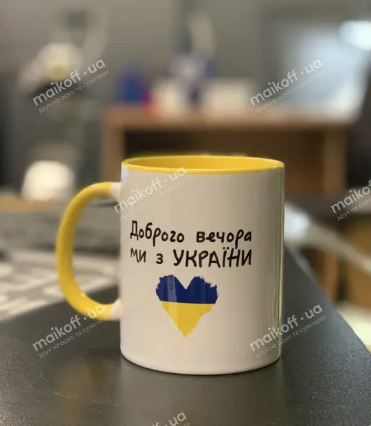 Чашка з кольоровою ручкою Доброго вечора ми з України