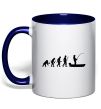 Чашка з кольоровою ручкою Еволюція рибака, колір - глибокий темно - синій