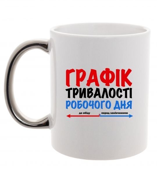 Нанести принт Графік тривалості робочого дня на глянсову керамічну чашку можна лише на зовнішню сторону. Колір принту можна замовити будь-який!