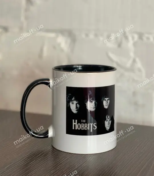 Нанести принт The Hobbits на глянсову керамічну чашку можна лише на зовнішню сторону. Колір принту можна замовити будь-який!