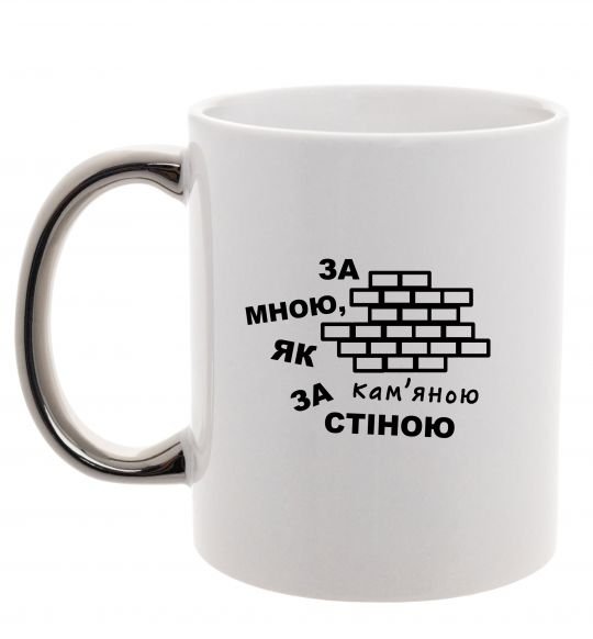 Нанести принт За мною, як за кам'яною стіною на глянсову керамічну чашку можна лише на зовнішню сторону. Колір принту можна замовити будь-який!