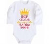 Боді для немовлят Ігор сказав народ зробив з довгим рукавом. Виготовлений з інтерлока, бавовна 100%.