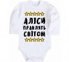 Боді для немовлят Аліси правлять світом з довгим рукавом. Виготовлений з інтерлока, бавовна 100%.