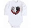 Боді для немовлят Чорний та білий дракони в трояндах з довгим рукавом. Виготовлений з інтерлока, бавовна 100%.