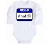 Боді для немовлят Hello my name is Anatolii з довгим рукавом. Виготовлений з інтерлока, бавовна 100%.