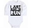 Боді для немовлят I just want to run з довгим рукавом. Виготовлений з інтерлока, бавовна 100%.