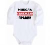 Боді для немовлят Микола завжди правий з довгим рукавом. Виготовлений з інтерлока, бавовна 100%.