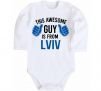 Боді для немовлят This awesome guy is from Lviv з довгим рукавом. Виготовлений з інтерлока, бавовна 100%.