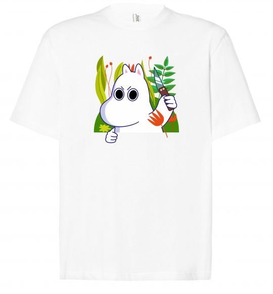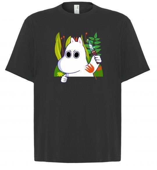 Футболка оверсайз прямого крою з бічними швами. Тканина 100% бавовна - м'яка та приємна на дотик. Після прання при правильному догляді футболка не розтягується, не сідає і не линяє. Нанести принт Мумі-троль з ножиком на футболку oversize можна на груди, на спину, на рукав. Колір принта можна замовити будь-який!