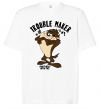 Футболка оверсайз прямого крою з бічними швами. Тканина 100% бавовна - м'яка та приємна на дотик. Після прання при правильному догляді футболка не розтягується, не сідає і не линяє. Нанести принт Trouble maker Taz на футболку oversize можна на груди, на спину, на рукав. Колір принта можна замовити будь-який!