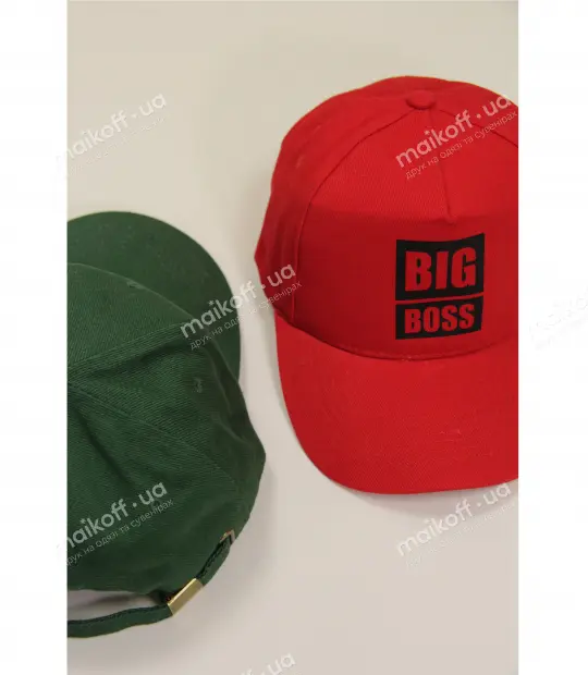 Нанести принт Напис BIG BOSS на бавовняну п'ятипанельну кепку можна на лобову, бічну та тильну сторону (попередньо обговоривши з менеджером). Розмір кепки регулюється металевою застібкою. Колір принту можна замовити будь-який!