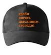 Нанести принт Зроби когось щасливим сьогодні на бавовняну п'ятипанельну кепку можна на лобову, бічну та тильну сторону (попередньо обговоривши з менеджером). Розмір кепки регулюється металевою застібкою. Колір принту можна замовити будь-який!
