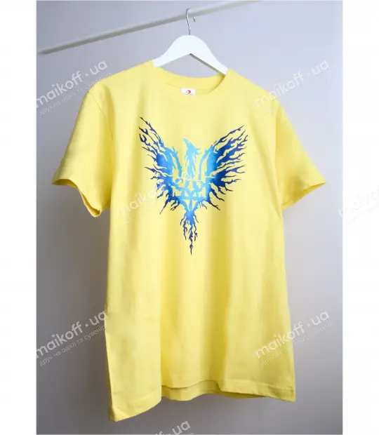 Футболка прямого крою без бічних швів. Тканина 100% бавовна - м'яка та приємна на дотик. Після прання при правильному догляді футболка не розтягується, не сідає і не линяє. Нанести принт Герб птах блакитний на футболку можна на груди, на спину, на рукав. Колір принта можна замовити будь-який!