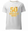 Чоловіча преміум-футболка власного виробництва. Виготовлена з якісної тканини (95% бавовна, 5% еластан) — щільна, м'яка та приємна до тіла. Принт 50 Birthday king можна розмістити на грудях, спині або рукаві.
