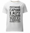 Чоловіча преміум-футболка власного виробництва. Виготовлена з якісної тканини (95% бавовна, 5% еластан) — щільна, м'яка та приємна до тіла. Принт Розумний гарний чолов'яга можна розмістити на грудях, спині або рукаві.