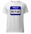 Чоловіча преміум-футболка власного виробництва. Виготовлена з якісної тканини (95% бавовна, 5% еластан) — щільна, м'яка та приємна до тіла. Принт Hello my name is Artur можна розмістити на грудях, спині або рукаві.