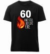 Чоловіча преміум-футболка власного виробництва. Виготовлена з якісної тканини (95% бавовна, 5% еластан) — щільна, м'яка та приємна до тіла. Принт 60 and still hot like fire можна розмістити на грудях, спині або рукаві.