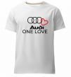 Чоловіча преміум-футболка власного виробництва. Виготовлена з якісної тканини (95% бавовна, 5% еластан) — щільна, м'яка та приємна до тіла. Принт Audi One love можна розмістити на грудях, спині або рукаві.