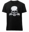 Чоловіча преміум-футболка власного виробництва. Виготовлена з якісної тканини (95% бавовна, 5% еластан) — щільна, м'яка та приємна до тіла. Принт Череп з гантелею можна розмістити на грудях, спині або рукаві.