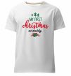 Чоловіча преміум-футболка власного виробництва. Виготовлена з якісної тканини (95% бавовна, 5% еластан) — щільна, м'яка та приємна до тіла. Принт First Christmas as daddy можна розмістити на грудях, спині або рукаві.