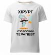 Чоловіча преміум-футболка власного виробництва. Виготовлена з якісної тканини (95% бавовна, 5% еластан) — щільна, м'яка та приємна до тіла. Принт Хірург це озброєний терапевт можна розмістити на грудях, спині або рукаві.