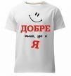 Чоловіча преміум-футболка власного виробництва. Виготовлена з якісної тканини (95% бавовна, 5% еластан) — щільна, м'яка та приємна до тіла. Принт Добре там де є я можна розмістити на грудях, спині або рукаві.