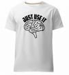 Чоловіча преміум-футболка власного виробництва. Виготовлена з якісної тканини (95% бавовна, 5% еластан) — щільна, м'яка та приємна до тіла. Принт Just use it можна розмістити на грудях, спині або рукаві.