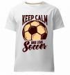 Чоловіча преміум-футболка власного виробництва. Виготовлена з якісної тканини (95% бавовна, 5% еластан) — щільна, м'яка та приємна до тіла. Принт Keep calm and love Soccer можна розмістити на грудях, спині або рукаві.