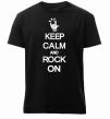 Чоловіча преміум-футболка власного виробництва. Виготовлена з якісної тканини (95% бавовна, 5% еластан) — щільна, м'яка та приємна до тіла. Принт Keep calm and rock on можна розмістити на грудях, спині або рукаві.