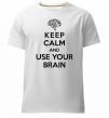 Чоловіча преміум-футболка власного виробництва. Виготовлена з якісної тканини (95% бавовна, 5% еластан) — щільна, м'яка та приємна до тіла. Принт Keep Calm use your brain можна розмістити на грудях, спині або рукаві.
