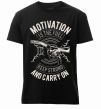 Чоловіча преміум-футболка власного виробництва. Виготовлена з якісної тканини (95% бавовна, 5% еластан) — щільна, м'яка та приємна до тіла. Принт Motivation Is The Fuel можна розмістити на грудях, спині або рукаві.