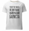 Чоловіча преміум-футболка власного виробництва. Виготовлена з якісної тканини (95% бавовна, 5% еластан) — щільна, м'яка та приємна до тіла. Принт Найкращий бариста можна розмістити на грудях, спині або рукаві.