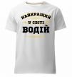 Чоловіча преміум-футболка власного виробництва. Виготовлена з якісної тканини (95% бавовна, 5% еластан) — щільна, м'яка та приємна до тіла. Принт Найкращий у світі водій можна розмістити на грудях, спині або рукаві.