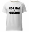 Чоловіча преміум-футболка власного виробництва. Виготовлена з якісної тканини (95% бавовна, 5% еластан) — щільна, м'яка та приємна до тіла. Принт Normal is boring можна розмістити на грудях, спині або рукаві.