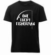 Чоловіча преміум-футболка власного виробництва. Виготовлена з якісної тканини (95% бавовна, 5% еластан) — щільна, м'яка та приємна до тіла. Принт One lucky fisherman можна розмістити на грудях, спині або рукаві.