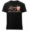 Чоловіча преміум-футболка власного виробництва. Виготовлена з якісної тканини (95% бавовна, 5% еластан) — щільна, м'яка та приємна до тіла. Принт Peace love boba tea можна розмістити на грудях, спині або рукаві.