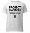 Чоловіча преміум-футболка власного виробництва. Виготовлена з якісної тканини (95% бавовна, 5% еластан) — щільна, м'яка та приємна до тіла. Принт Project manager можна розмістити на грудях, спині або рукаві.