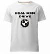 Чоловіча преміум-футболка власного виробництва. Виготовлена з якісної тканини (95% бавовна, 5% еластан) — щільна, м'яка та приємна до тіла. Принт Real men drive BMW можна розмістити на грудях, спині або рукаві.