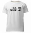 Чоловіча преміум-футболка власного виробництва. Виготовлена з якісної тканини (95% бавовна, 5% еластан) — щільна, м'яка та приємна до тіла. Принт Rus ні peace да можна розмістити на грудях, спині або рукаві.