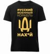 Чоловіча преміум-футболка власного виробництва. Виготовлена з якісної тканини (95% бавовна, 5% еластан) — щільна, м'яка та приємна до тіла. Принт Русский военный корабль можна розмістити на грудях, спині або рукаві.