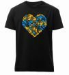 Чоловіча преміум-футболка власного виробництва. Виготовлена з якісної тканини (95% бавовна, 5% еластан) — щільна, м'яка та приємна до тіла. Принт Серце в колір прапору України можна розмістити на грудях, спині або рукаві.